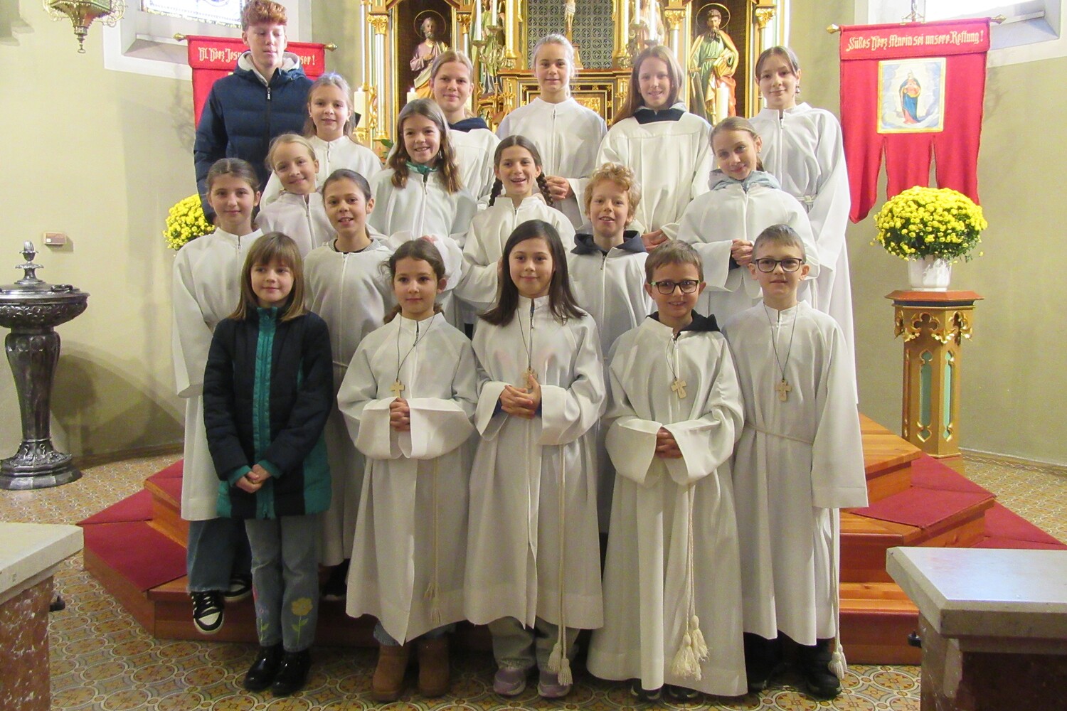 vier neue Minis aufnehmen konnten. Emilia und Valentin wurden - nach zum Teil langjährigem Ministrantendienst - verabschiedet.
